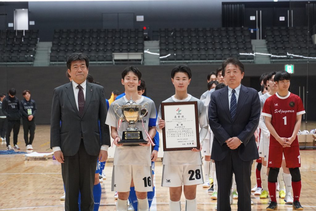 12月27日(土)、28日(日)の2日間、日環アリーナ栃木にてLUXPERIOR CUP 地域大学フットサルチャンピオンズリーグ2025を開催し、決勝戦終了後に表彰式をおこないました。表彰一覧は以下のとおりです。